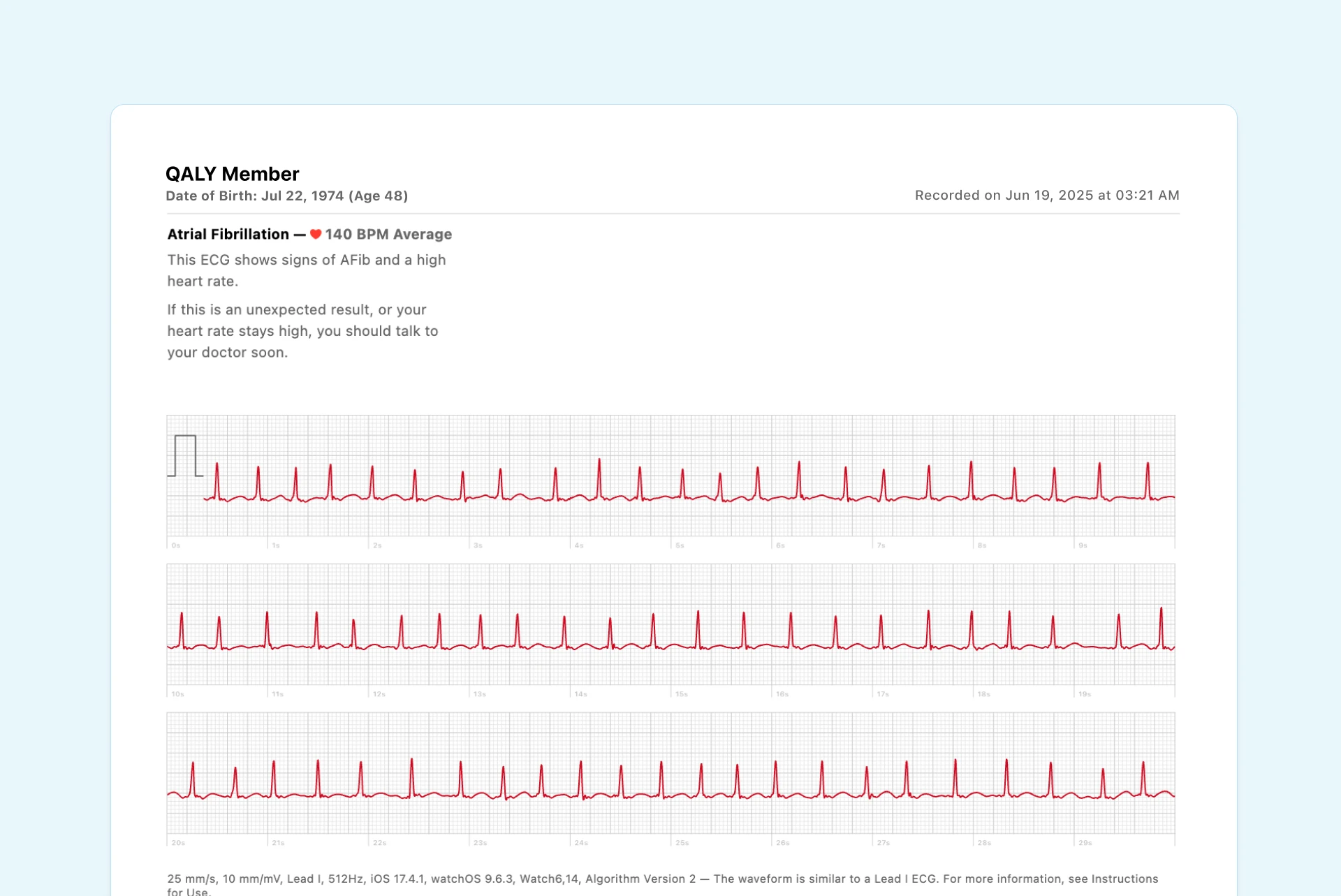 Stop wondering what your heart is doing during those unsettling moments. With Qaly, you can get your at-home ECGs analyzed by certified experts in minutes.